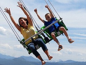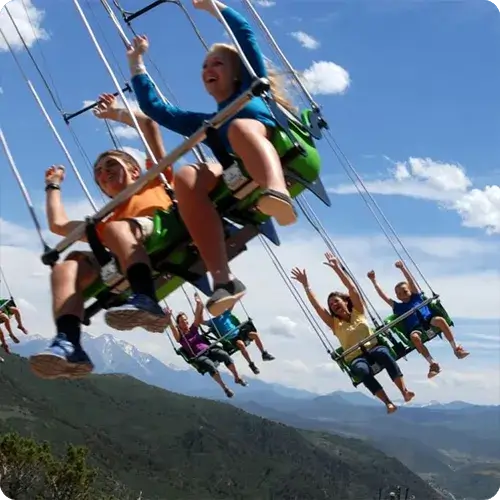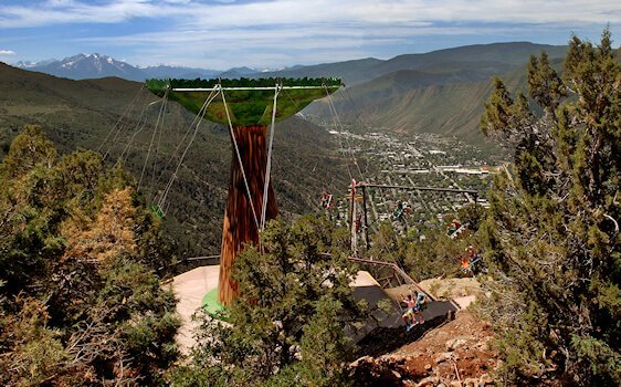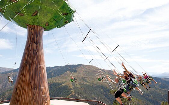 The Glenwood Canyon Flyer is perched on the edge of Glenwood Canyon, right between the Giant Canyon Swing and the Cliffhanger Roller Coaster.