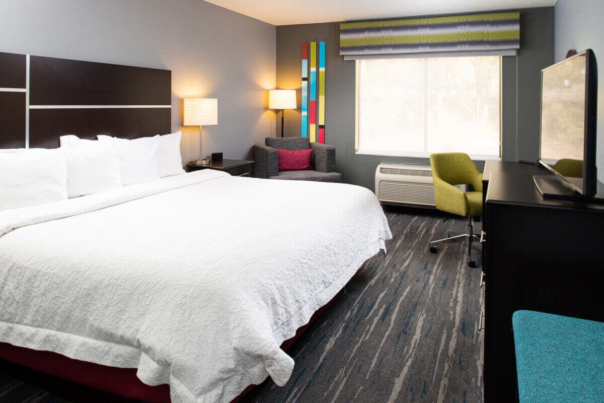 Enjoy the newly-updated Hampton Inn Glenwood Springs that is adjacent to Glenwood Caverns Adventure Park and walking distance to Iron Mountain Hot Springs. Guests love the indoor pool and hot tub with outside patio area for gatherings. The hotel offers a variety of room types including large suites for families to enjoy. Every guestroom features a microwave, refrigerator and in-room coffeemaker. Amenities include the FREE hot breakfast buffet daily, indoor pool and hot tub, fitness room, business center and snack shop. We are within walking distance of Downtown Glenwood Springs and a variety of restaurants and shops.Â