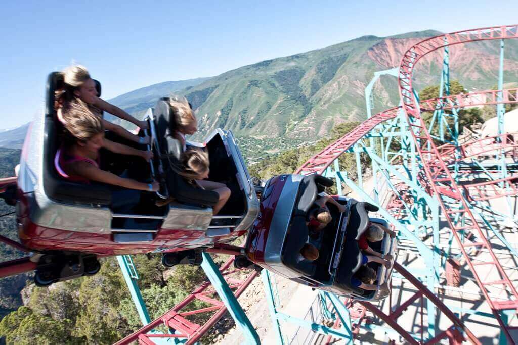 Fifty feet tall, perched at an altitude of 7,160 feet and hugging the side of Iron Mountain, the Cliffhanger edges out all other coasters on the continent. A crowd-pleaser, its cliff-side curves and heart-stopping drop offs make it a must-ride attraction for coaster aficionados and thrill-seekers. From the ride’s pinnacle are views of the Colorado River in Glenwood Canyon, 1,450 feet below!